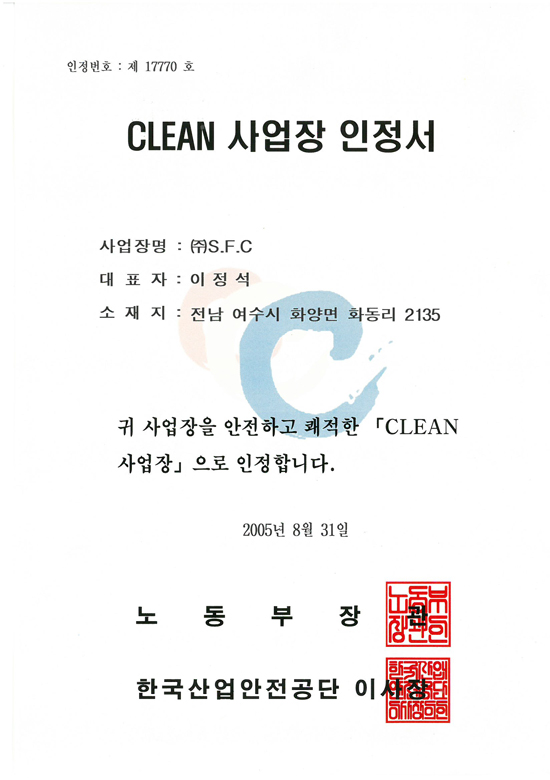 CLEAN 사업장 인정서