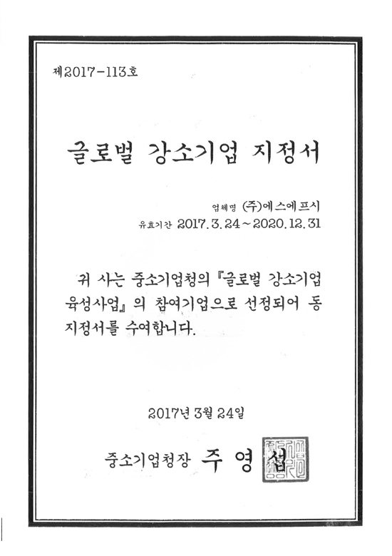 글로벌 강소기업 지정서