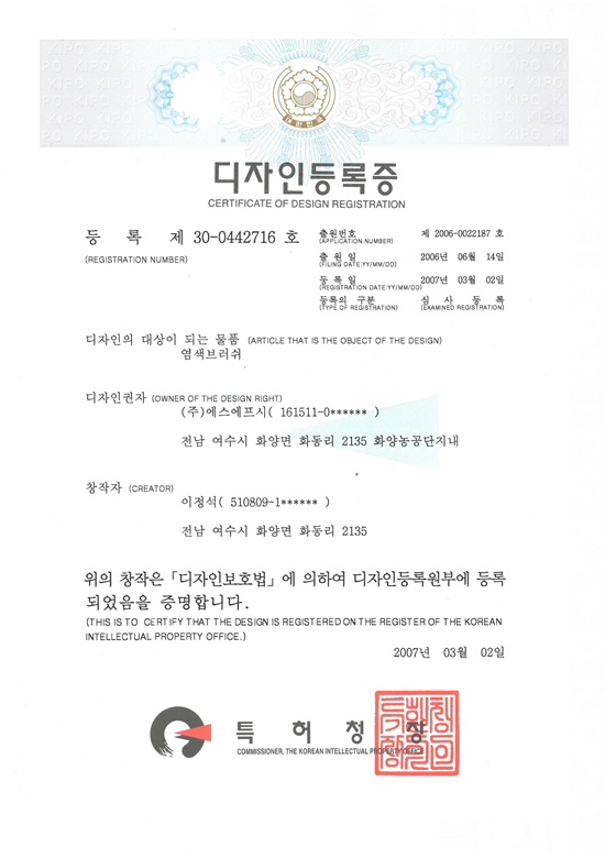 디자인 등록증(염색브러쉬)