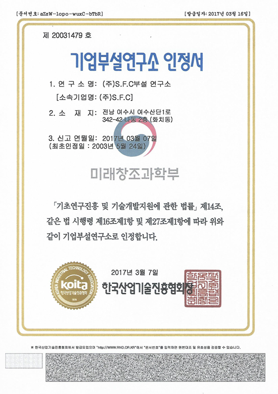 기업부설연구소 인정서